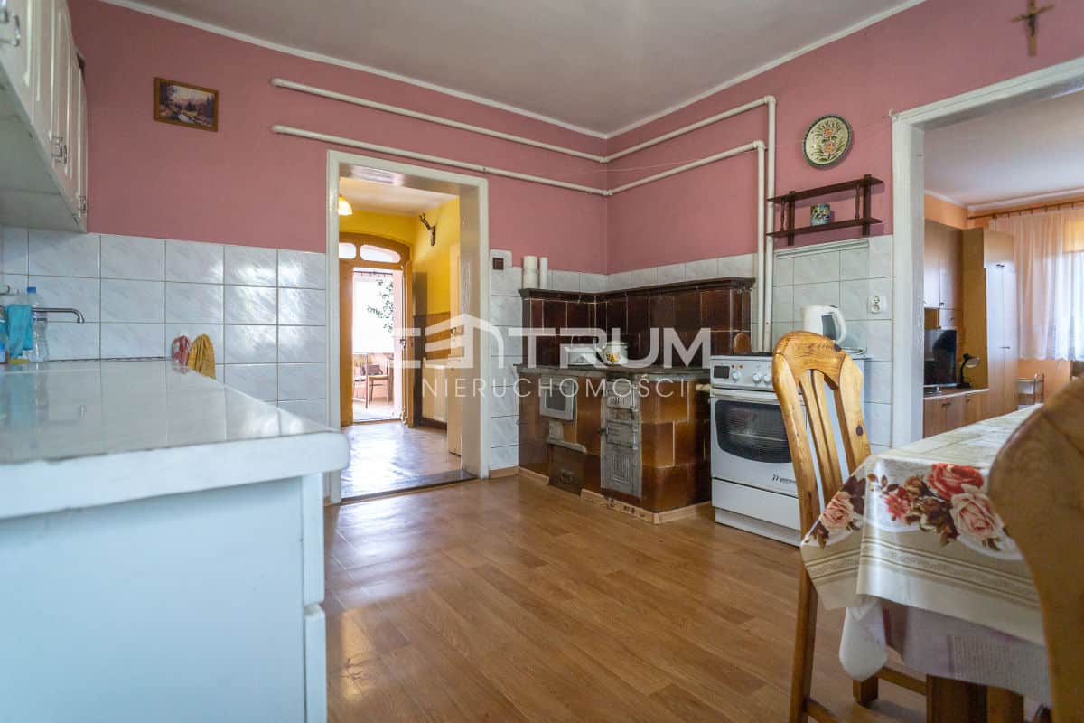 STANDARD WYKOŃCZENIA DOMU: Dom wybudowany w latach 30-tych XX wieku w technologii tradycyjnej z cegły. Grubość ścian to ok. 48 cm. Dach o konstrukcji drewnianej kryty dachówką ceramiczną, dach werandy kryty papą. Okna drewniane skrzynkowe w pokojach. W łazience,spiżarni oraz kuchni okna plastikowe. Dom częściowo podpiwniczony.W piwnicy znajduje się piec na opał stały z zasobnikiem na wodę.W łazience dodatkowy bojler. Grzejniki panelowe.