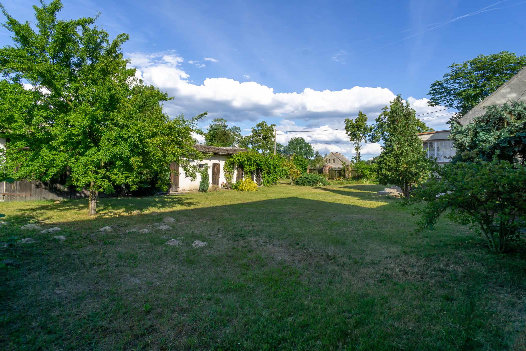 - zabudowanej o pow. 2100 m2 , na której znajduje się poniemiecki dom o pow. użytkowej 69 m2, budynki gospodarcze: stodoła, garaż, budynek warsztatowy oraz ogród.